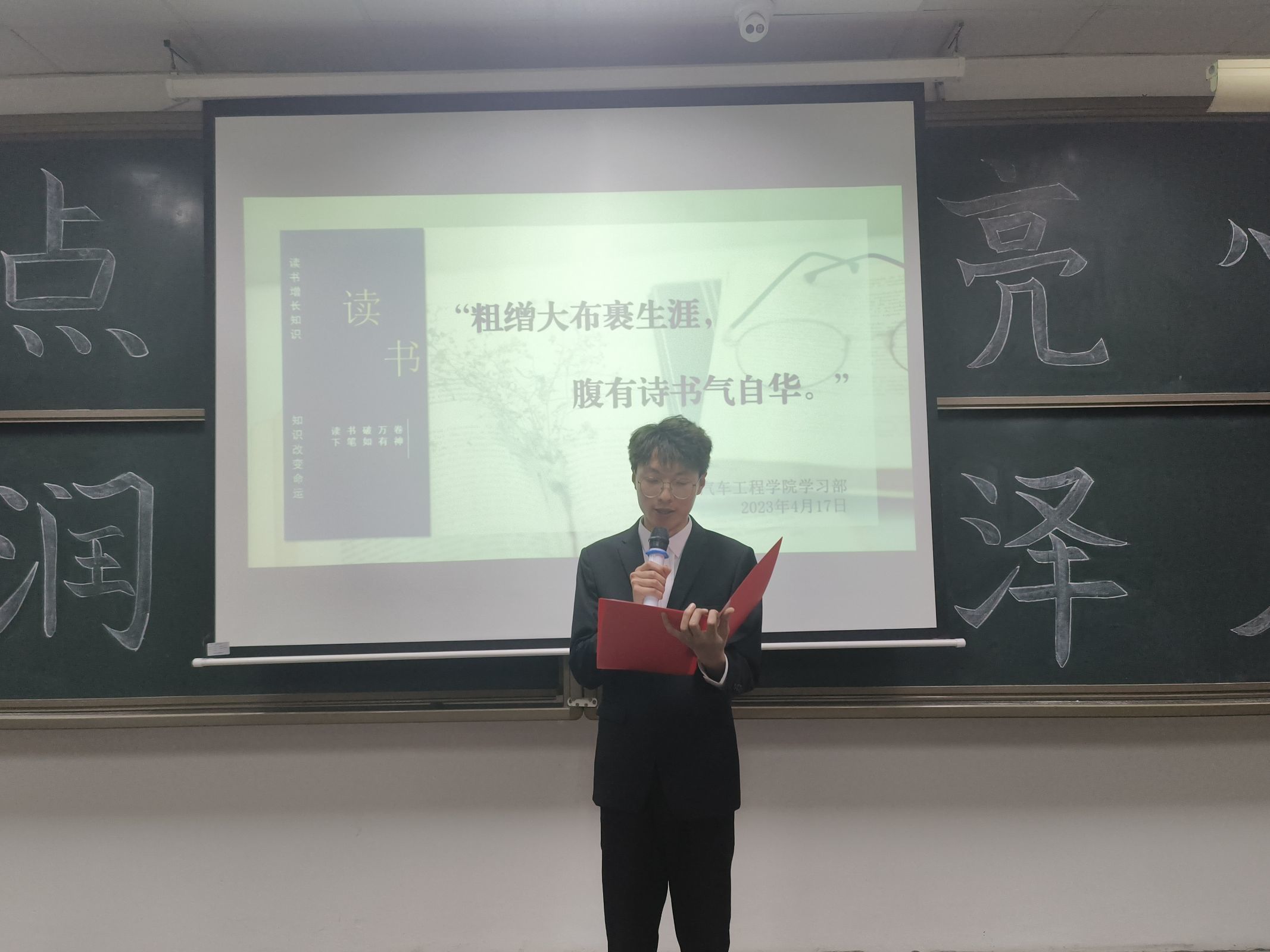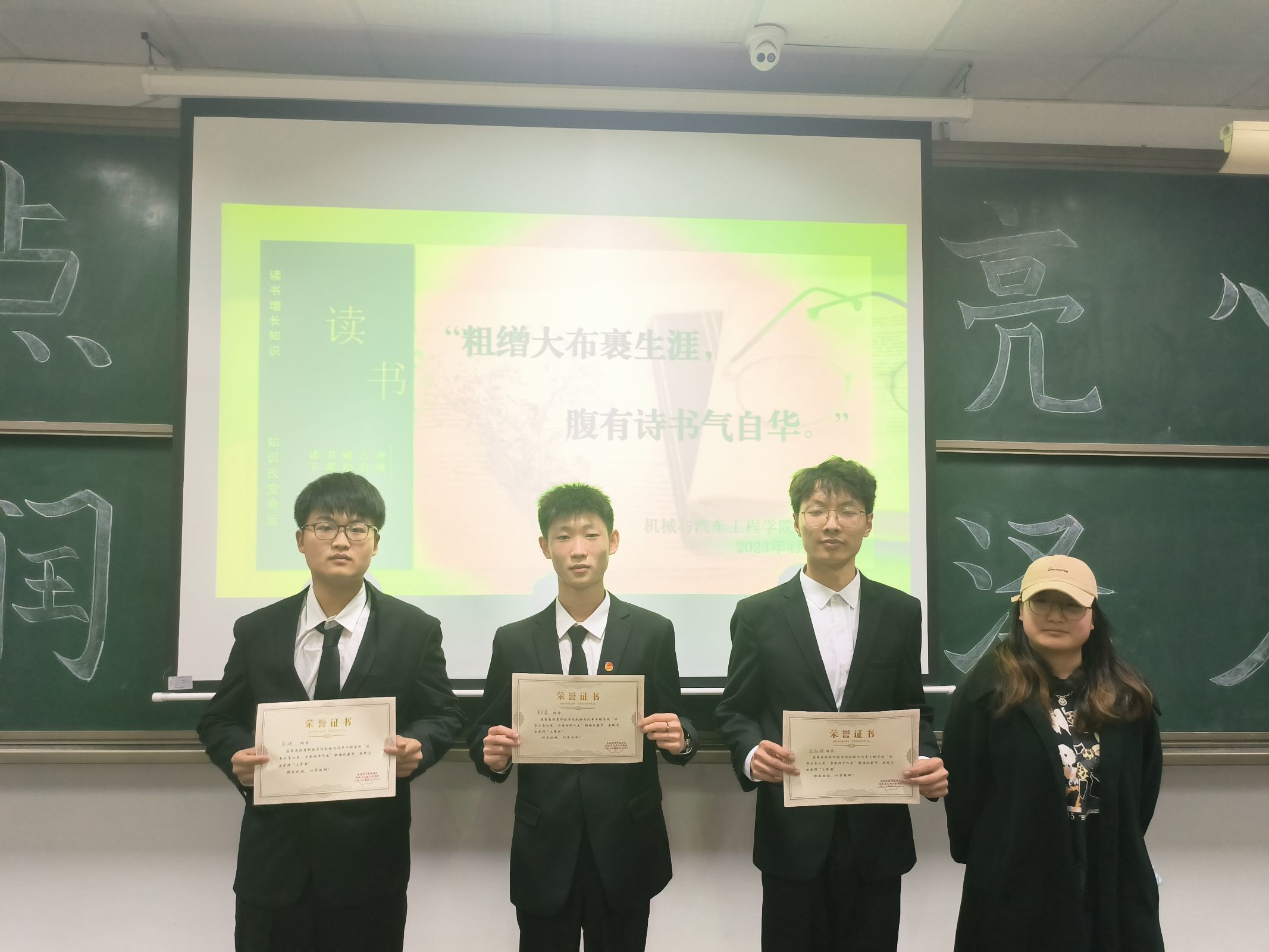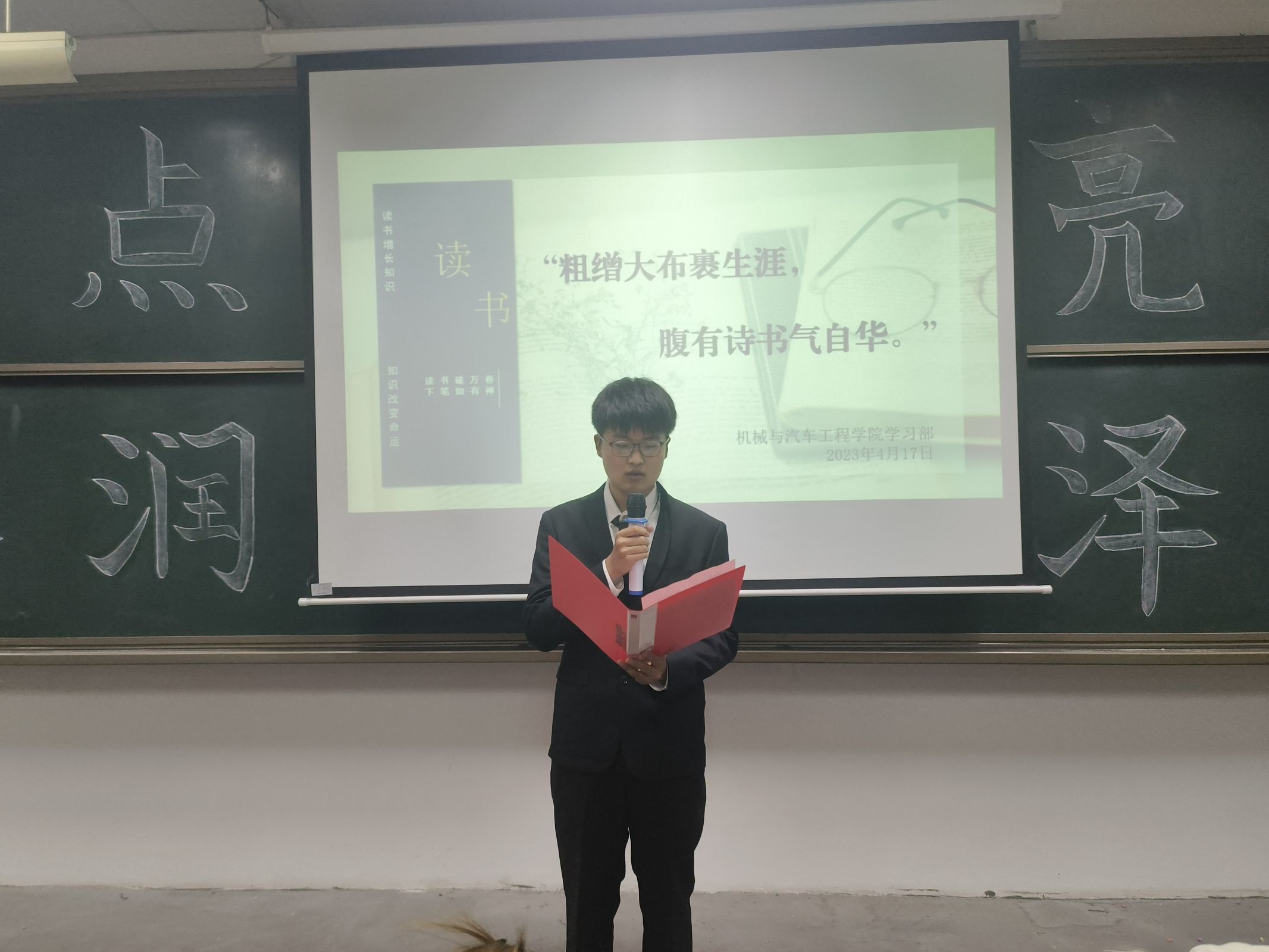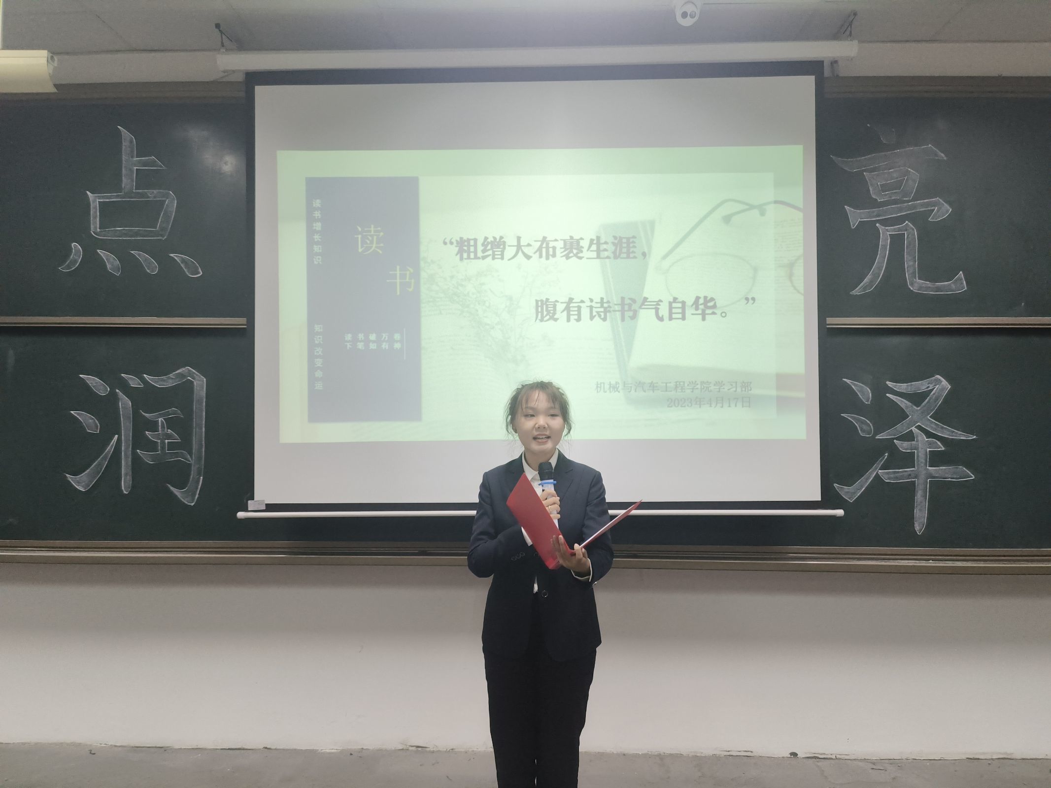 为深入实施素质教育,弘扬与传承传统文化,全面提升学生的文学素养、综合素质,培养同学们多读书、读好书的良好习惯,机械与汽车工程学院特于4月17日A4-808教室举办了“读书点亮心灵,书香润泽人生”朗诵比赛。