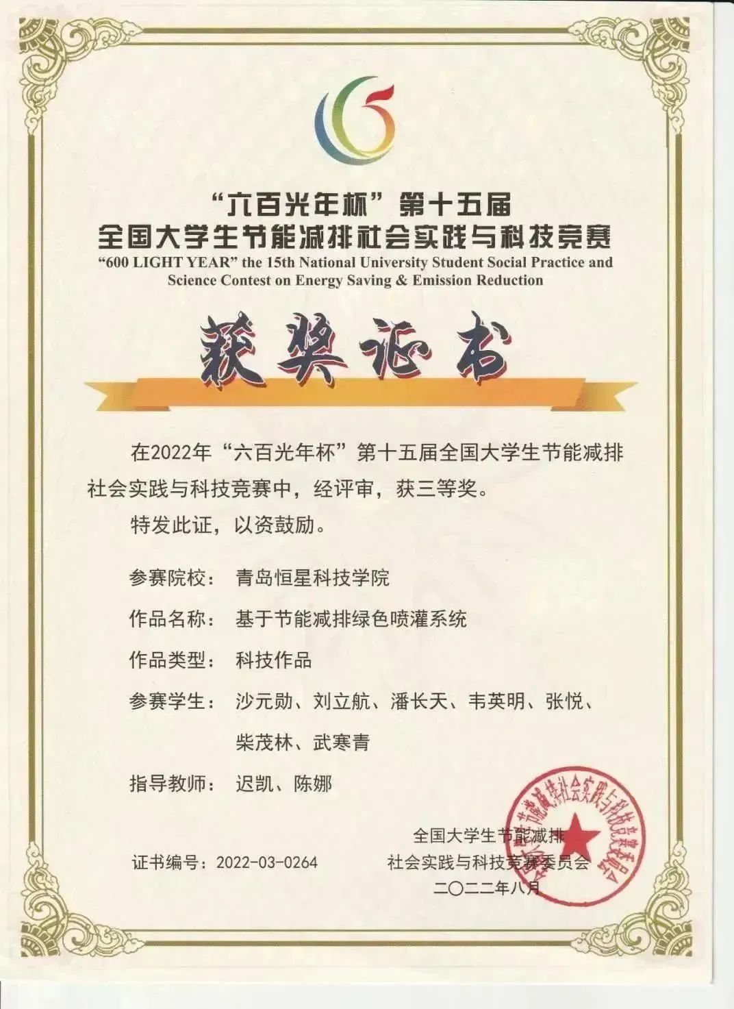 机械与汽车工程学院于2022年5月20日组织学生参加了第十五届全国大学生节能减排社会实践与科技竞赛。近一个月的培训和学习,参赛同学都受益匪浅,最终获得了国家级三等奖的傲人成绩。
