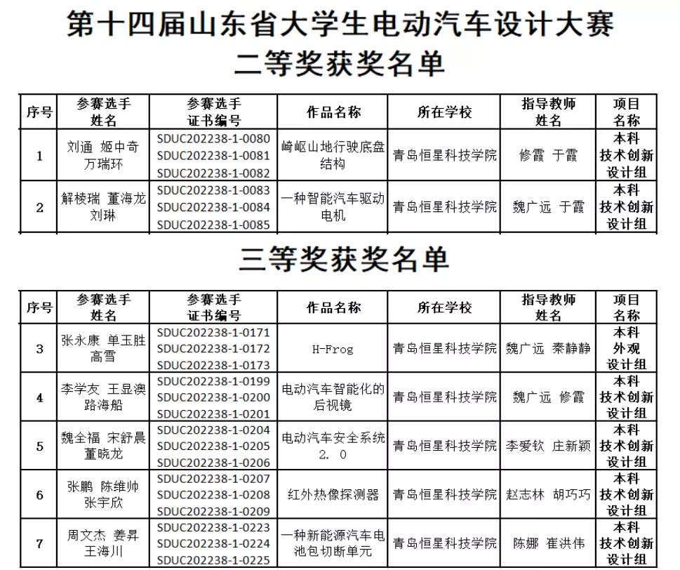为拓展实践教学内容的深度与广度,培养学生创新精神,机械与汽车工程学院于2022年10月5日组织学生参加了第十四届山东省大学生电动汽车设计大赛,并最终获得了获得省级二等奖2项、三等奖5项的优异成绩。