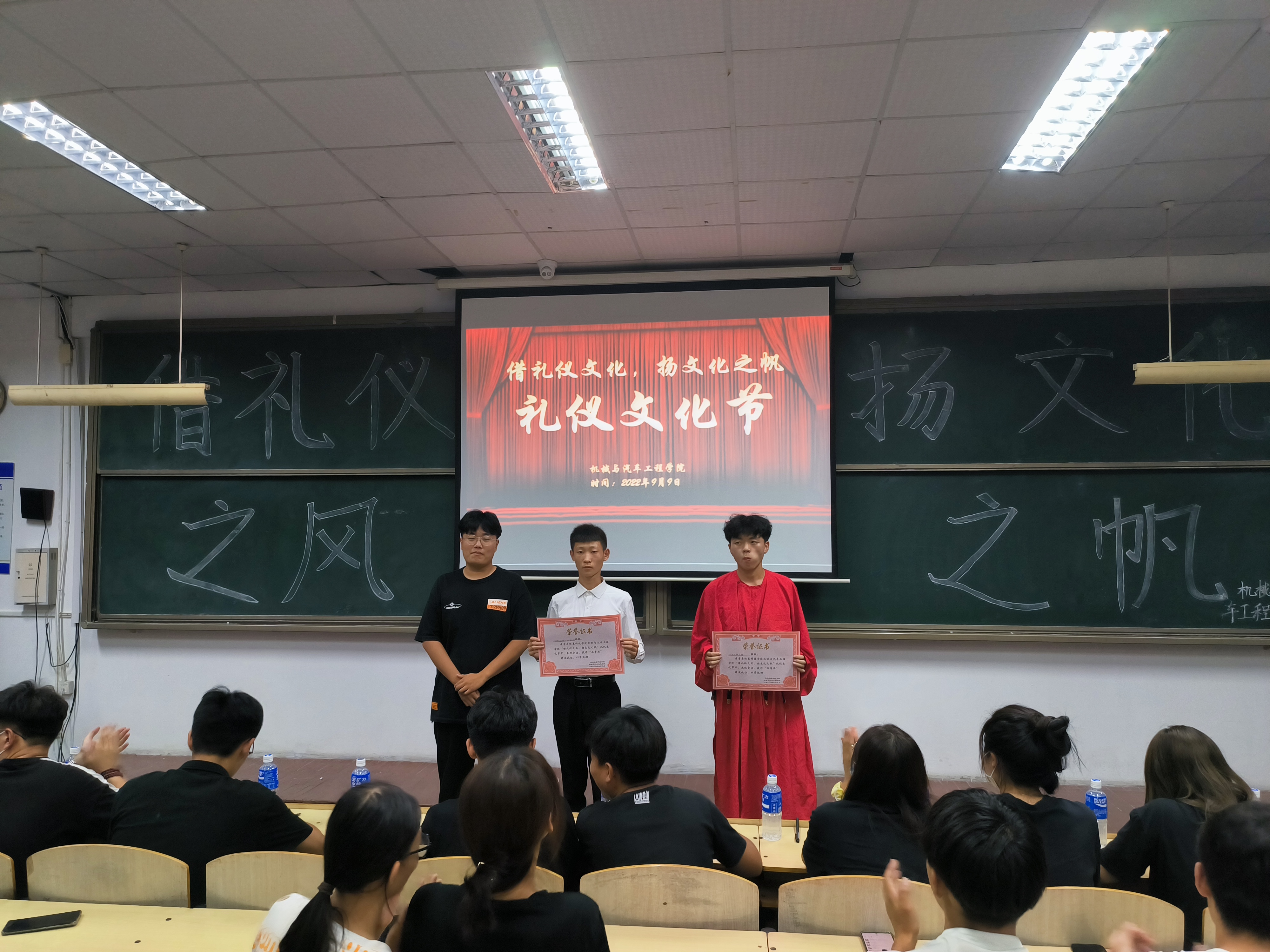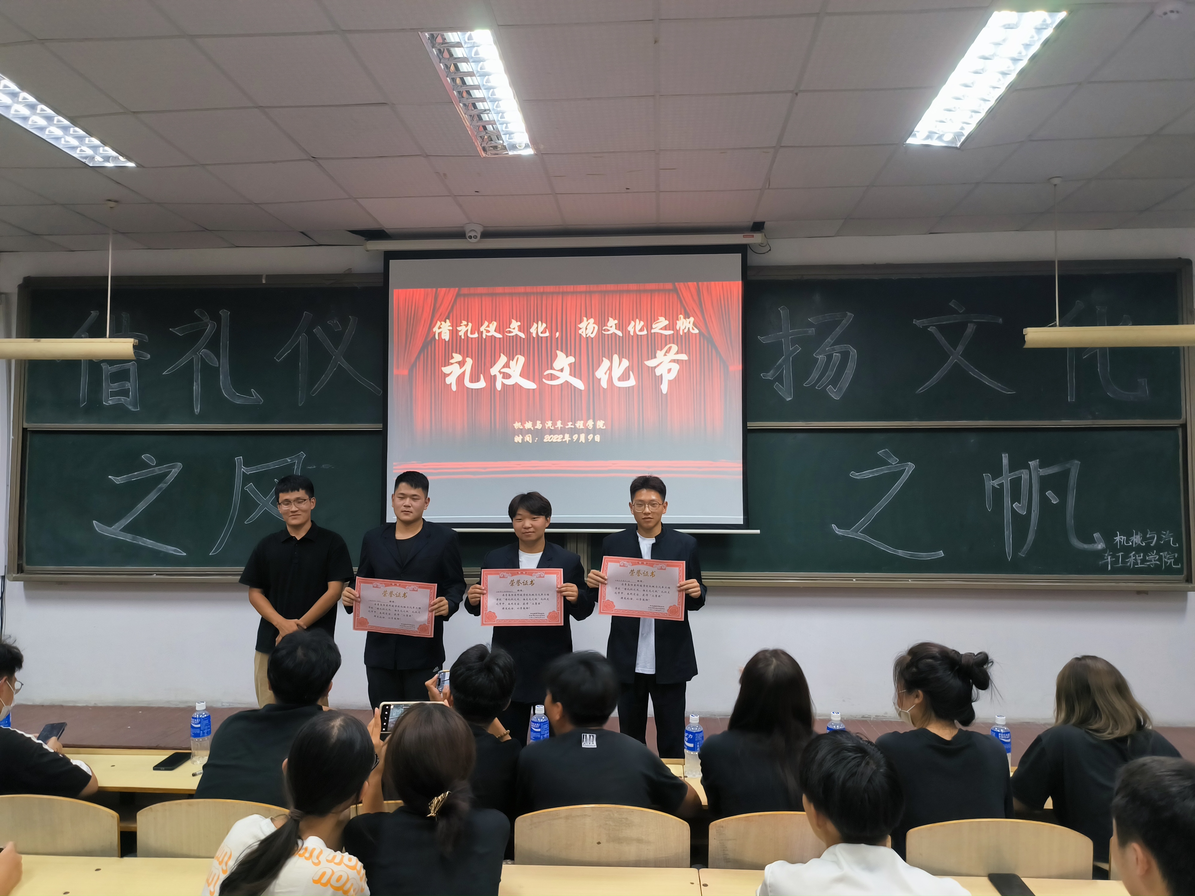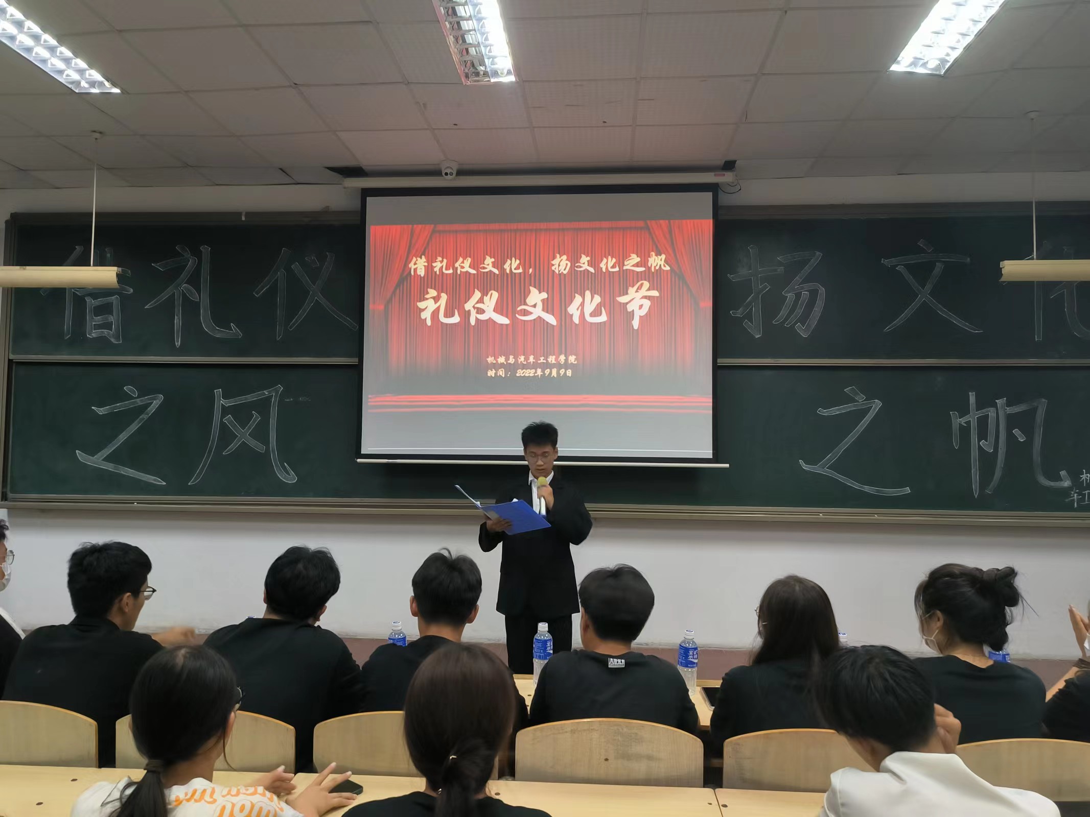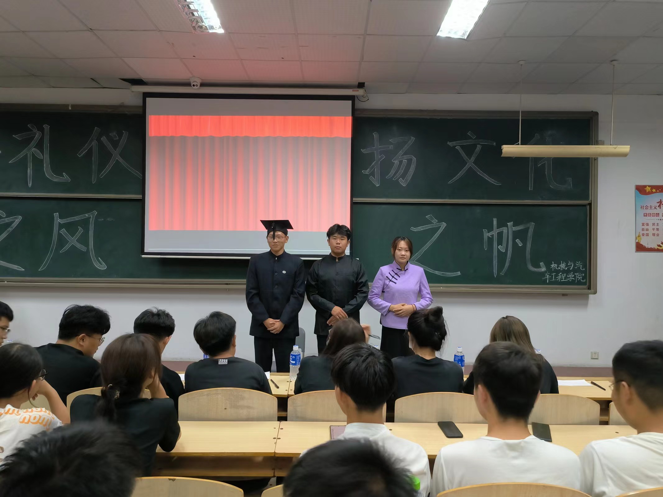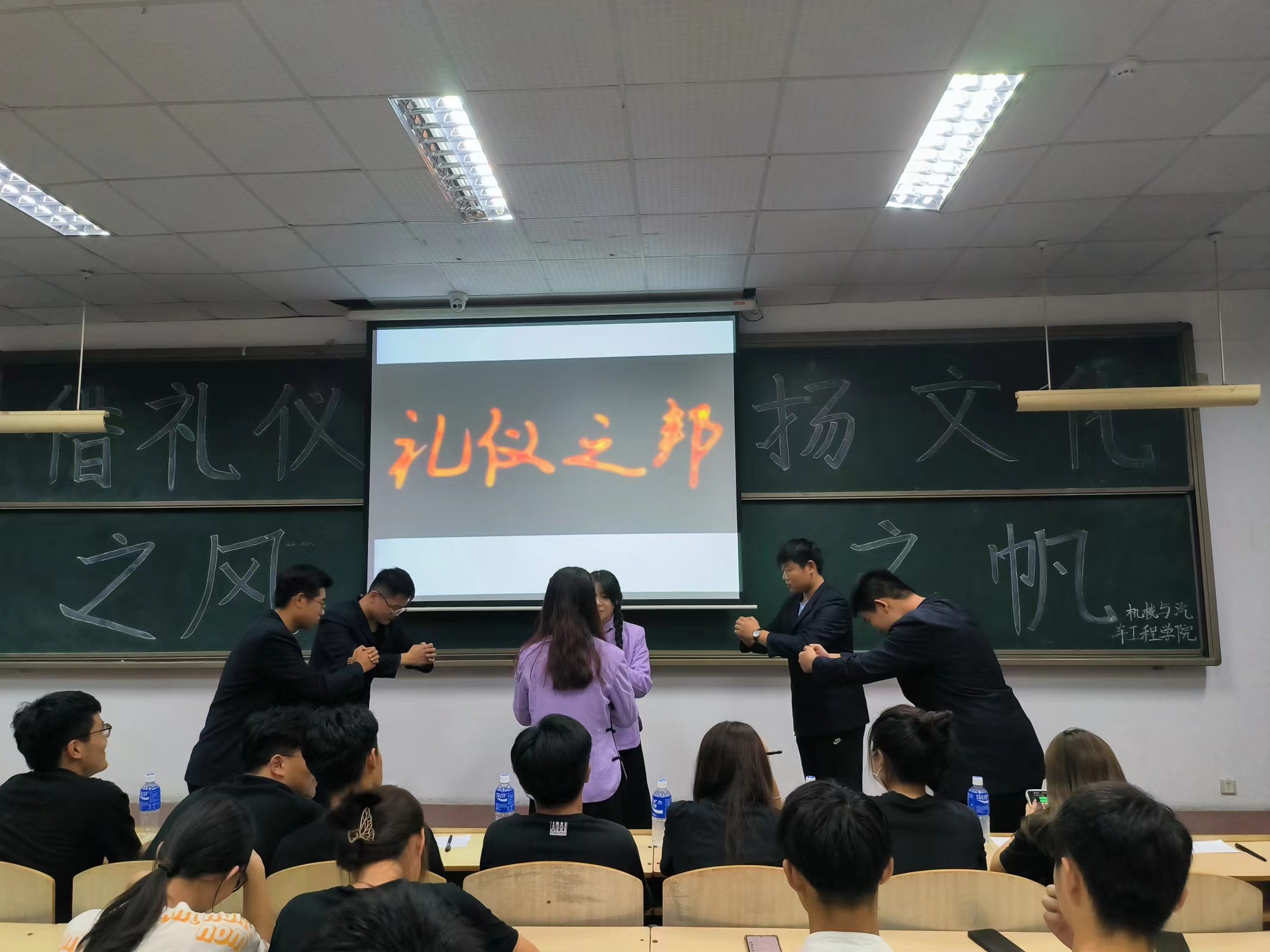 文明礼仪不仅是个人素质、教养的体现,也是个人道德和社会公德的体现,更是城市的素养、国家的脸面。为了进一步激发广大师生投身建设社会主义现代化国家新征程的活力和激情,积极培育和践行社会主义核心价值观,弘扬创新精神,营造积极向上、和谐健康的校园文化氛围,机械与汽车工程学院于9月9日晚19:00在A4近思楼902教室开展了第四届文明礼仪文化节。