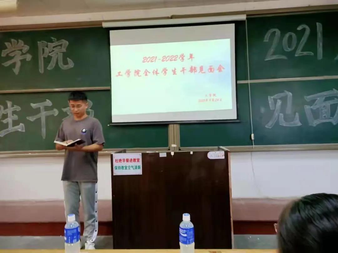 为增强学生干部的岗位意识,完善自身建设,加强内部管理,工学院于9月24日中午12点10分在A4铭志楼802召开了第一次全体学生干部见面会议。出席本次活动的领导有工学院学生管理院长张菲菲和全体辅导员老师。