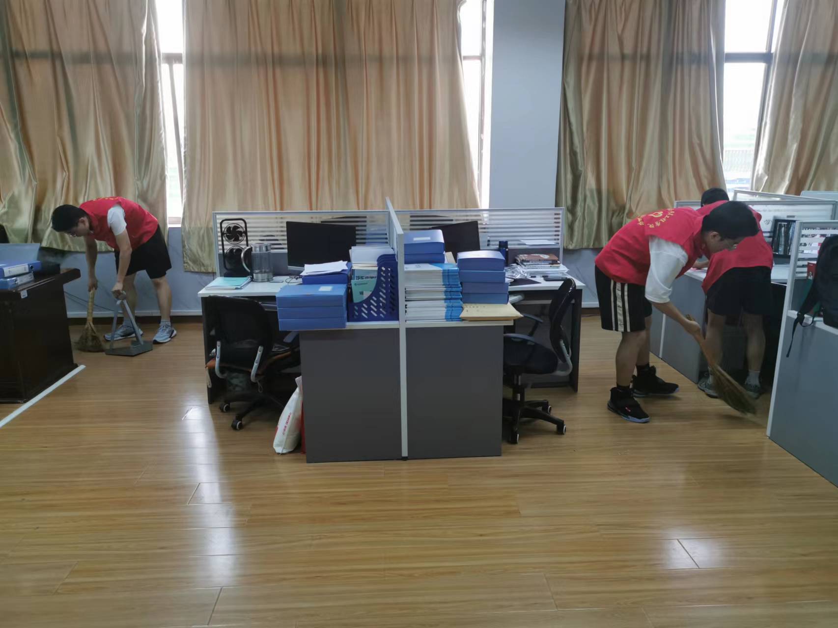 主动为教师清理办公室。扫地、拖地、擦桌子、清理卫生死角、倒垃圾等,同学们在志愿服务的同时也收获到了一份快乐和喜悦,更重要的是让大家从中感受到老师们在工作岗位上认真、勤恳、敬业的态度,增强了同学们对于老师的认可和理解,营造了健康和谐、积极向上的师生氛围。