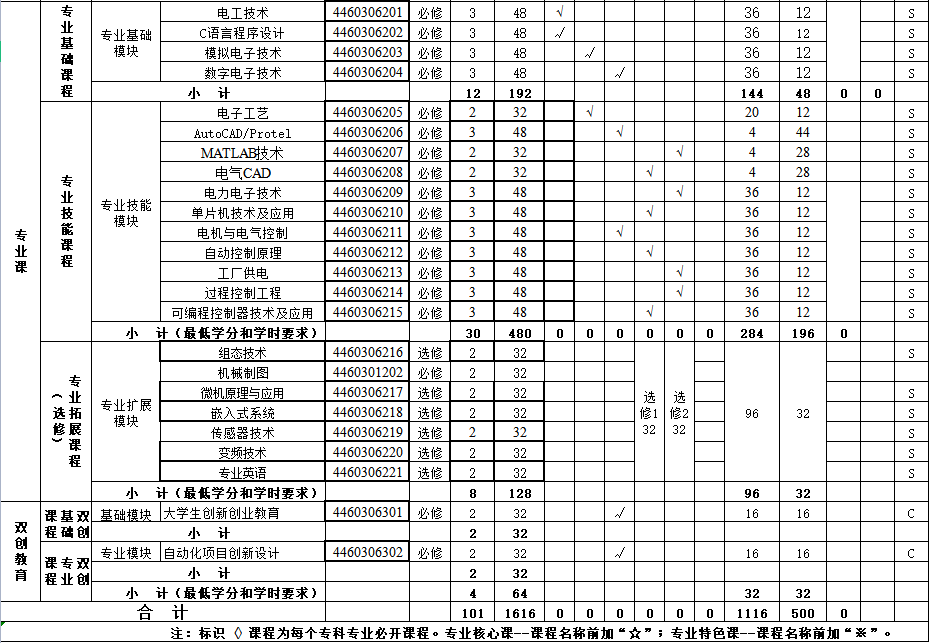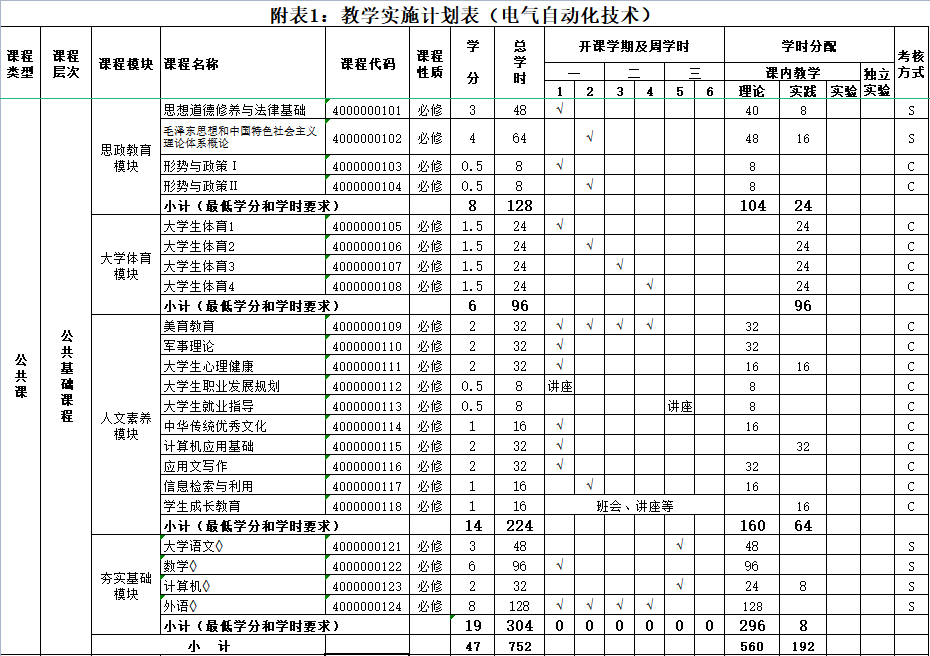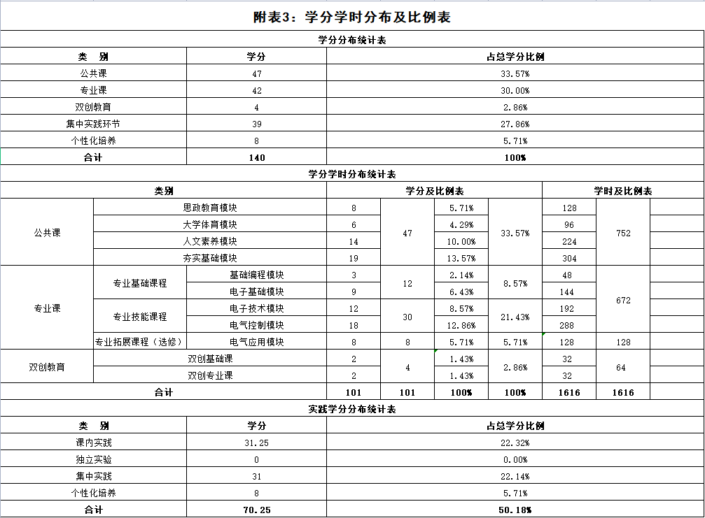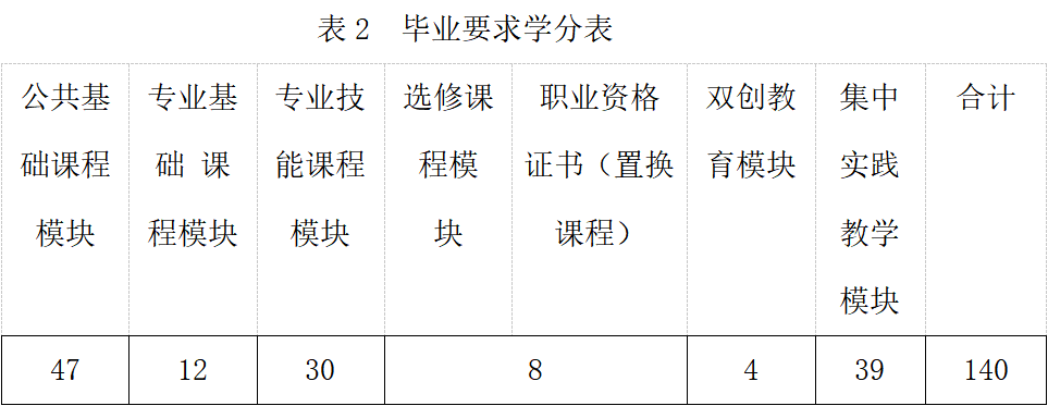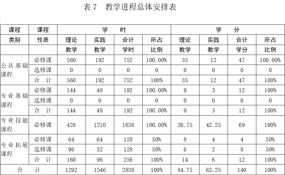 本专业课程主要包括公共基础课程、专业课程和双创教育课程。专业课程包括专业基础课程、专业核心课程、专业拓展课程(选修),并覆盖有关实践性教学环节,具体学时安排见附表教学实施计划表。
