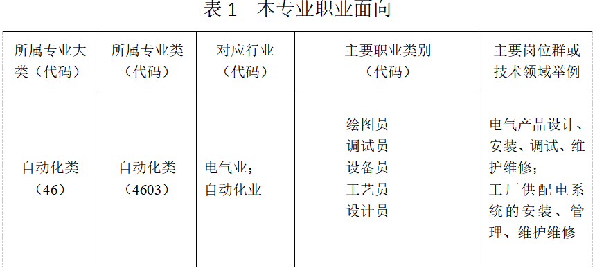 本专业培养德、智、体、美全面发展,具有良好职业道德和人文素养,熟悉驱动技术、 总线控制技术及电气技术的相关国家标准与工艺规范,掌握电工电子、仪器仪表、可编程控 制、组态控制等基本知识,具备自动化设备及系统的运作与管理能力,从事自动化设备及系 统安装、调试、维护、设计及运行管理等工作的高素质技术技能人才。