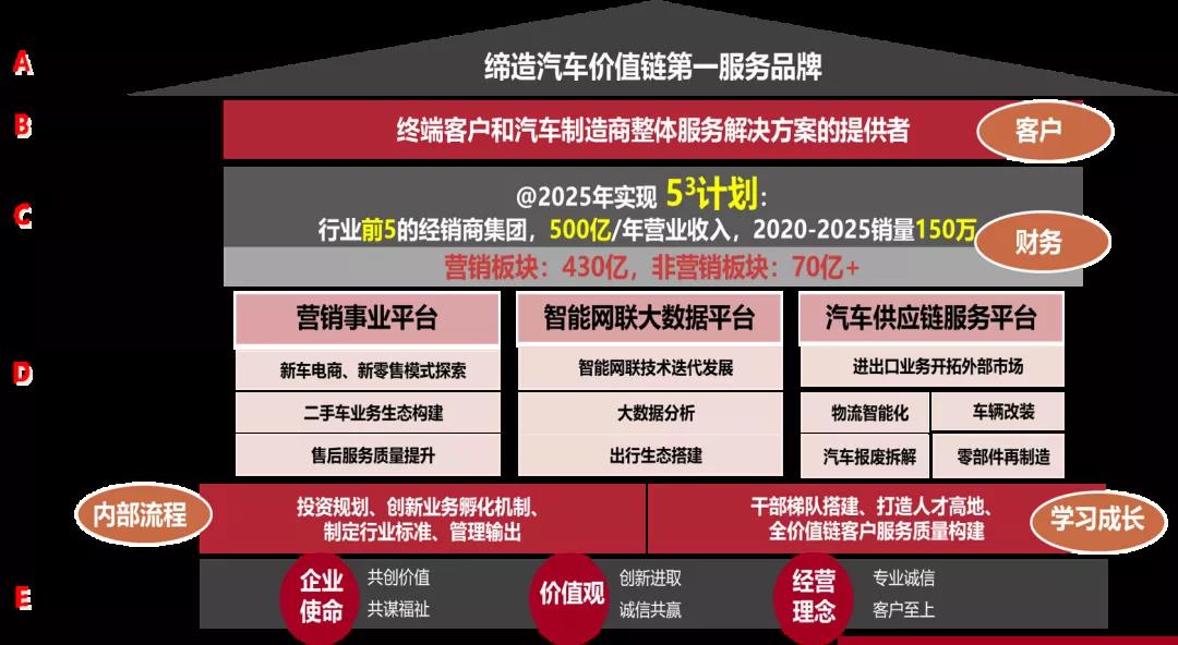企业以缔造汽车价值链服务第一品牌为愿景以共创价值,共谋福祉为使命,以创新进取,诚信共赢为价值观;以专业、诚信、客户至上为经营理念,以品为根本,以行为推手,以提升汽车价值链服务品质为己任,以帮助他人成功而贡献价值为光荣;东风南方,引导汽车服务潮流,共创“人·车·生活”和谐图景;东风南方,励志成为中国汽车价值链第一服务品牌。
