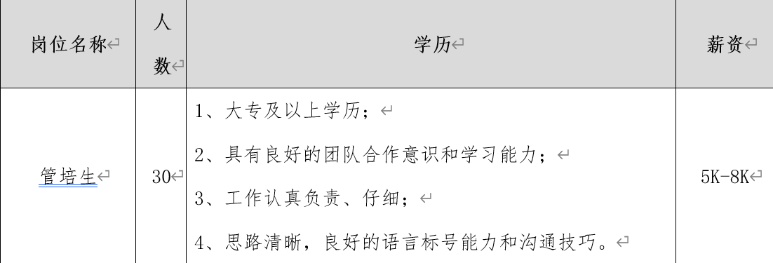 因企业发展需要,现面向校园招聘,公司完善的在职培训体系,可在技术、管理等岗位得以全面提升。我们有舒适的食宿环境,广阔的发展平台,以及以人为本、敬才惜才培养人才的企业文化,期待各位学子的加入。